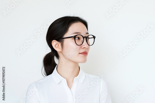 happy, young, adult, korean, woman, modern, stylish, eyeglass, eyesight, correction, looking away, advertising, goggles, optic, isolated, white, background, beauty, model, face, smile, hair, smiling, person, looking, lady, 1, studio, eye, long hair, cute, chinese, japanese, asian, thinking, student, business, businesswoman, happiness, manager, confident, professional, secretary, teacher