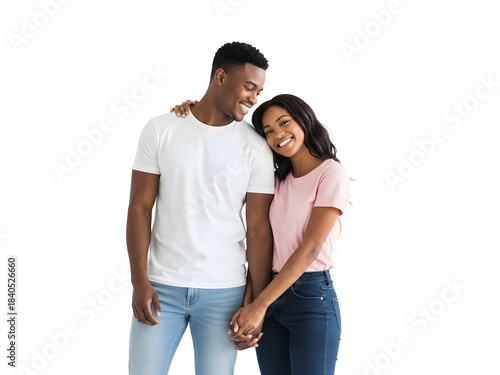 young, couple, african, american, happy, smiling, love, human relationships, togetherness, affection, joy, studio, shot, black, background, man, woman, boyfriend, girlfriend, partnership, 2, people, adult, attractive, ethnicity, cheerful, confident, romantic, caring, support, bond, hugs, holding, hand, looking, at, camera, standing, casual attire, wear, plain, emotion, expression, positive, feeling, optimism, youthful, friendship, dating