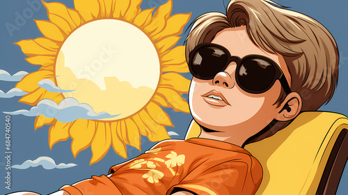 Happy young boy is fast asleep, having a good dream illustration