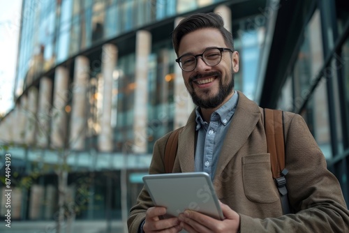 men at work, technology, caucasian, mobile, professional, businessman, business, corporate, cyberspace, contraption, confident, success, male, executive, people, job, happy, photogenic, successful, city, background, tablet, outdoors, office, adult, boss, manager, travel, casual attire, designer, freelancer, smile, 1, lifestyle, young, computer, entrepreneur, portrait, modern, cheerful, work, man, person
