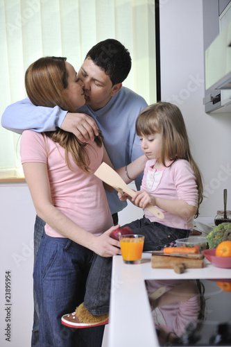 happy young family in kitchen