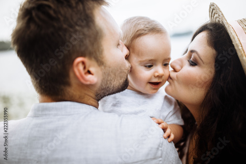 Happy young family with small son sin the park