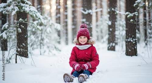 girl, children, children, winter, snow, forest, wood, happy, smiling, joy, cold, outdoors, nature, tree, snowy, frosted, red, coat, hat, mitten, foulard, sitting, play, fun, season, landscape, portrait, cute, adorable, childhood, adventure, explore, park, weather, frost, white, beautiful, peaceful, tranquil, holiday, vacation, leisure, activity, fresh, crisp, bright, sunlight, day, young