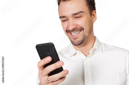mobile, man, male, people, person, technology, phone, white, isolated, communication, smile, background, guy, mobile phone, 1, young, boy, photogenic, smart, happy, text, holding, casual attire, attractive, adult, relax, modern, message, mobile phone, touch, looking, screen, caucasian, joy, lifestyle, student, cellular, hand, teenage, typing, using, social, smartphone, online, smiling, reading, portrait