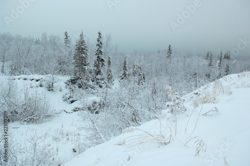 Harbor mist winter landscape