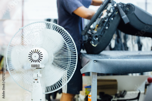 upholstery, upholster, leather, design, hand-made, craft, factory, workshop, manufacturing, industry, men at work, man, people, tool, detail, stitch, seam, fabric, modern, style, luxury, concept, texture, surface, material, decorative, interior, auto, automobile, vehicle, car, horizontal