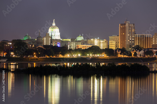 skyline, harrisburg, pennsylvania, capitol, capital, water, night, urban, landscape, town, city