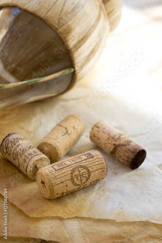 harvest concept with corks of aged wine