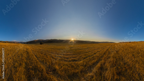 harvested, straw, stubble field, field, surrounded, foothill, autumn, cloud, blue skies, beauty, sunset, nobody, no people, outdoors, surface level, ambient, scene, wallpaper, landscape, calmness, seamless, scenic, environment, scenery, idylli, dusk, journey, agriculture, majestic, leisure, evening, vale, tranquil, nature, panoramic, travel, scenic, golden hour, scenic view, stubble field, kyrgyzstan, horizon, panoramic view, clear sky