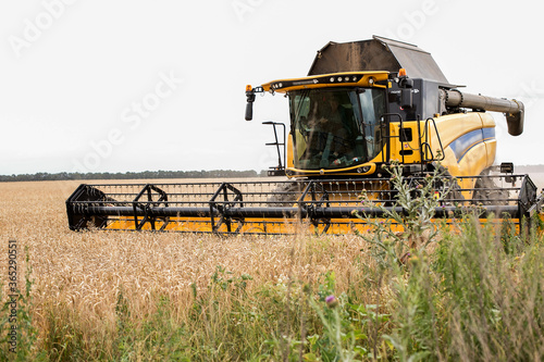 Harvester on a wheat field. Harvesting