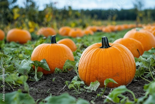 pumpkin, harvest, farm, autumn, field, orange, green leaf, agriculture, rural, seasonal, crop, nature, farming, gardening, vegetable, landscape, sunlight, growth, planting, scenery, ripe, bountiful, produce, dirtied, fall, countryside, organic, horticulture, cultivation, freshness, fruit farm, marketplace, community, family, environment, sunshine, gathering, festival, plant, distance, scenic, picturesque, colours