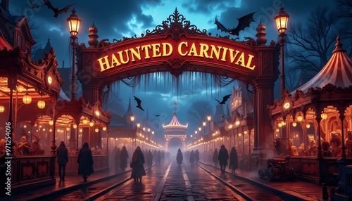halloween, carnival, haunted, skittish, ghost, skeleton, bat, fog, spider's web, night scene, horror, scarey, creepy, trick or treat, vivid colors