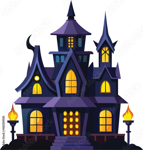 haunted, luxury home, with, glowing, lantern, vector, illustration, design, graphic, art, halloween, skittish, architecture, creative, unique, elegant, decorative, modern, artistic, clean, white, background