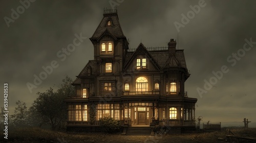 Haunted victorian mansion nighttime scene