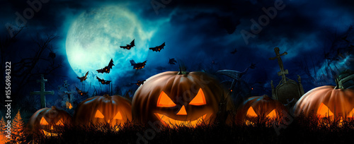 Haunting halloween pumpkin patch enchanted forest digital art dark night spooky vibes