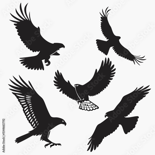 Hawk Silhouette Vector Sheet - Flying and Perched Birds