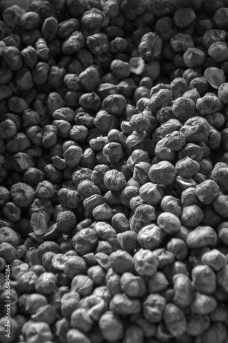 Hazelnuts on market, black and white
