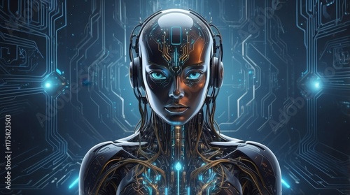 Head, image of artificial intelligence in a human body, woman