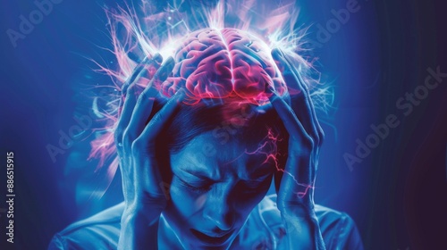 Headache, agony discomfort and migraine with effective treatment, stress relief, lifestyle adjustments for improved health and well - being, solution for symptom relief and comfor pulsating character