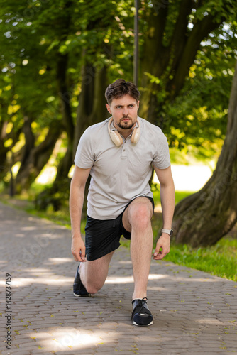 sportsman, man, athlete, runner, put on, earphones, cardio, run, start, race, morning, jogger, park, exercise, motivation, physical exercise, fitness, guy, determine, outdoors, sport, training, health, activewear, wellness, activity, jog, caucasian, young adult, city, outside, lifestyle, male, summer, sunny, one person, timer, technology, time, listen, music, wearable, bracelet, healthy lifestyle, sporty, tracker, vitality, endurance, pulse