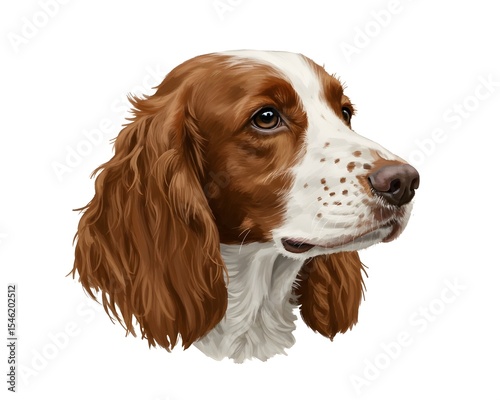 cocker spaniel, dog, portrait, illustration, isolated, white background, spaniel, purebred, head shot, face, beautiful, gentle, pet, animal, canino, springer, cocker, puppy, cute, white, brown, breed, black, mammal, sitting, hunting, friends, adorable, pedigree, domestic, studio