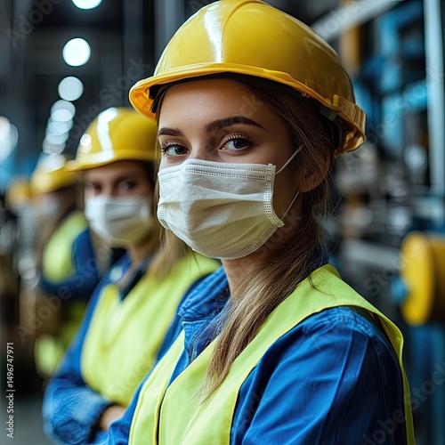 Health and safety in business shown with companies adopting safety protocols, providing PPE, and implementing workplace health guidelines to ensure employee safety and meet industry compliance
