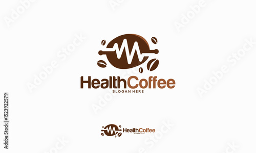 Health Coffee logo designs concept vector, Coffee Bean logo designs template