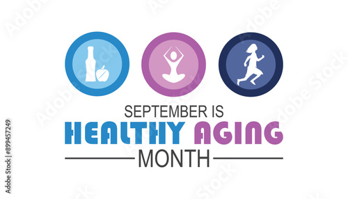 Healthy Aging Month is observed every year on September.Holiday concept background, placard, banner design template Vector illustration background design.