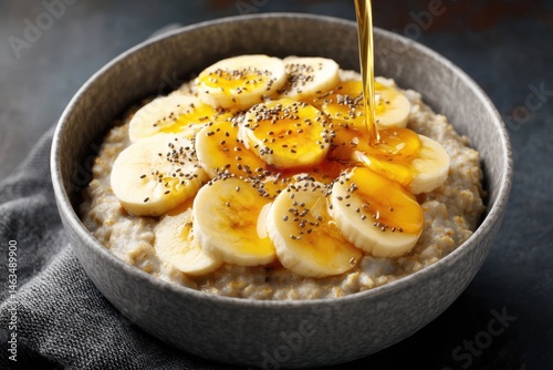 bowl, breakfast, food, healthy, oatmeal, banana, honey, drizzle, topping, sliced, seed, delicious, sweet, nourishment, grain, plate, porridge, morning, closeup, ingredient, natural, tasty, simple, vegan, vegetarian, diet, dietitian, energy, portion, easy, light, smooth, creamy, fresh, deliciously, homemade