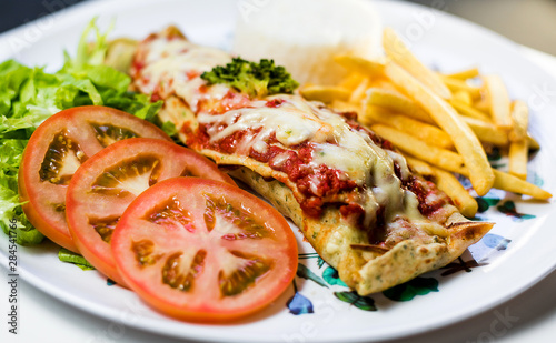 food, salad, meal, dinner, chicken, plate, meat, dish, tomatoes, fried, vegetable, fish, grilled, healthy, epicure, cookery, lettuce, seafood, lunch, green, pepper, salmon, sauce, diet, bread, snack, fast food