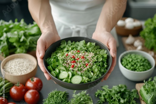 health food, salad, fresh, vegetable, organic, alimentary, healthy, eating, grain, vegan, lifestyle, diet, clean, food, wellness, nourishment, ingredient, meal, antioxidant, vegetarian, farming, wholesome, produce, habit, low-calorie, dietary, need, bowl, vitamin, sustainable, raw, tomatoes, lettuce, cabbage, cucumber, pepper, broccoli, cooking, kitchen, eatery, green, preparation, woman, vegetable, preparing, dinner