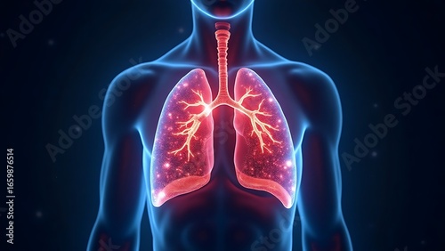 digital illustration, anatomy, bod, science, medicals, biology, health, wellness, medicine, scientific, anatomical, healthy, lung, respiratory, breathing, human, person, body, glowing, light, dark background, night, abstract, futuristic, technology, transparent, illustration, educational, concept, health care, organ, study, research, clinic, hospital, doctor, nurse, patient, diagnosis, treatment, pulmonary