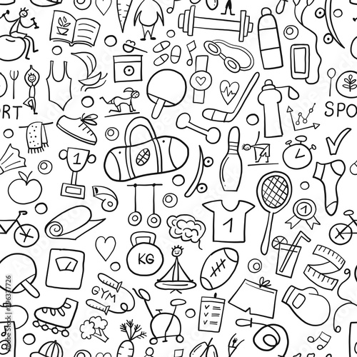 Healthy Lifestyle Background. Sport and activity. Fintess design elements. Seamless Pattern