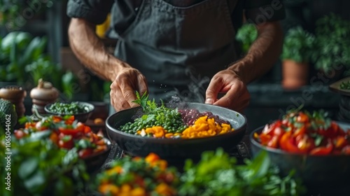 Healthy Lifestyle. The Nourishing Choices. A close-up shot of a person's hand preparing a healthy and balanced meal, their expression conveying a sense of care and attention to nutrition.