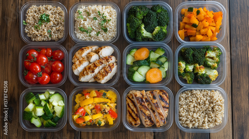 Healthy meal prep with chicken, grains, and vegetables in containers