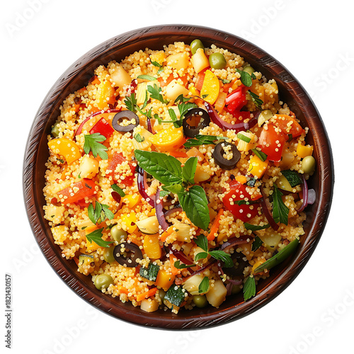Healthy quinoa salad with vegetables and herbs isolated on transparent background