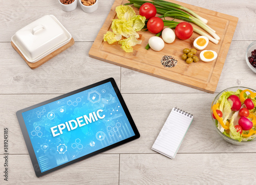 Healthy Tablet Pc compostion with EPIDEMIC inscription, immune system boost concept
