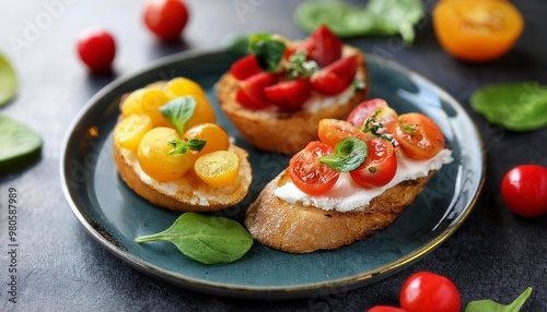 Healthy vegetarian toasts with cream cheese, Fruits. Summer fresh fruit toast sandwich. Generative Image