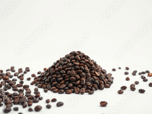 heap of cocoa beans on a white background isolated, cocoa beans, close-up, snack, dry, brown
