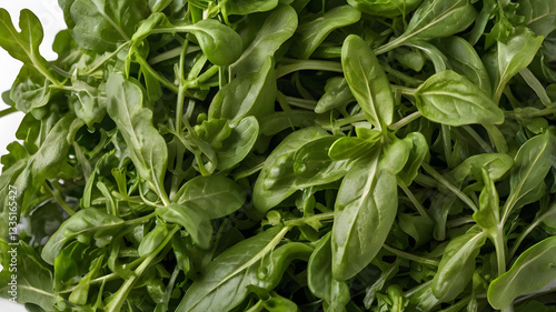 Heap of Green fresh rucola or arugula leaf isolated on white background