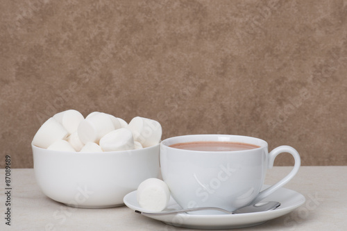 Heap Of Marshmallows In White Bowl. Hot Chocolate Drink