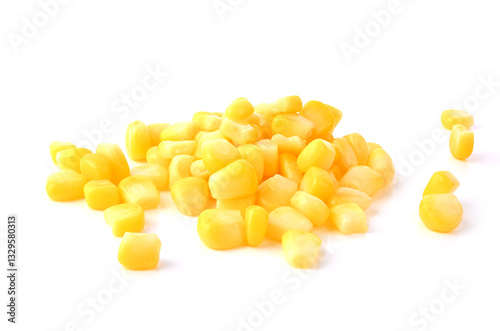 Heap of sweet corn seeds on white background