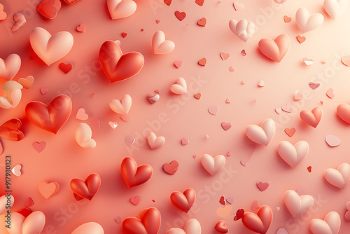 Heart Balloons rising up to the sky 3D illustration. Love, valentines day, romantic, wadding or birthday background