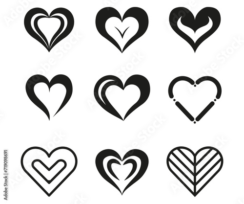 Heart collection, heart shapes abstract, romance icons, love doodles vector illustration