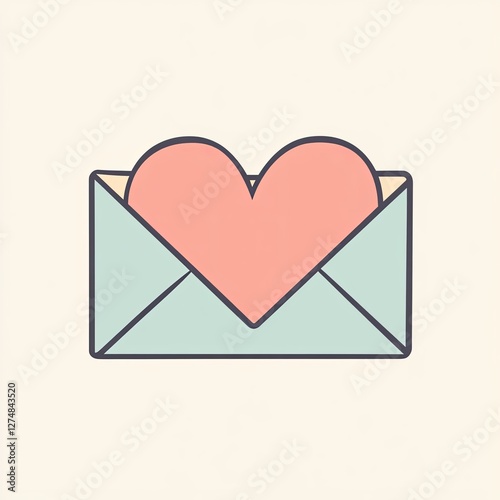 heart envelope, a simple line drawing, flat design style, pastel colors