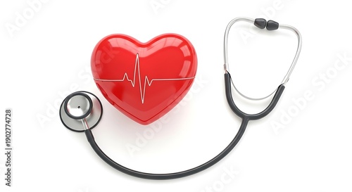 Heart health monitoring with stethoscope and heartbeat symbolizing medical care