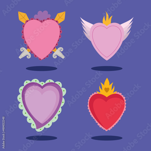 heart, love, valentine, decoration, romantic, decorative, sword, flames, wing, frame, romance, passion, cute, greeting, celebration, happy, wedding, drawn, decor, vector, illustration, design, icon, set, icon
