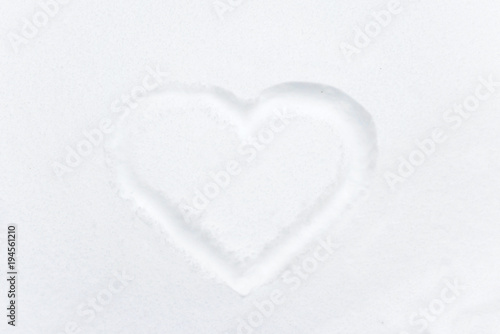 Heart shape drawing on white snow