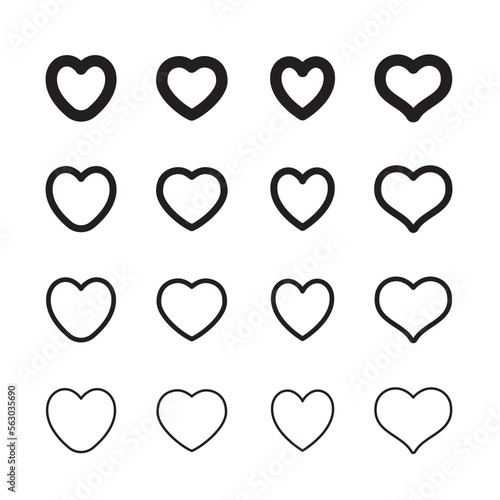Heart shape icons. Hearts pictogram set. Symbol for valentine's day love.
