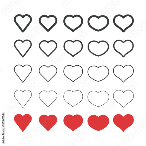 Heart shape icons. Hearts pictogram set. Symbol for valentine's day love.